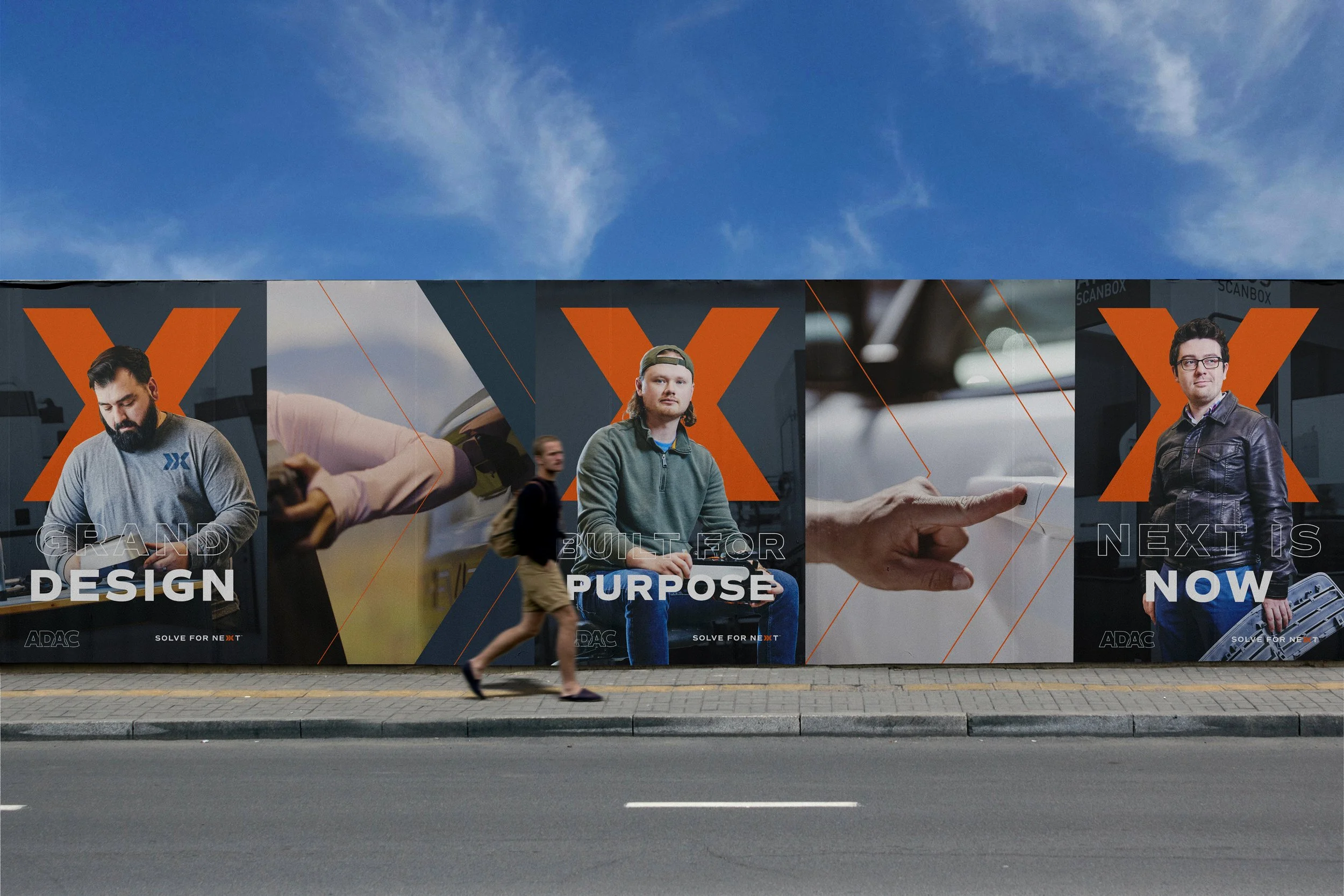 The ADAC X icon is constructed using arrows, which interlock to continue the symbolism from the new logo. The icon also contains two forward-pointing arrows—reminiscent of the ‘fast forward’ icon—to imply forward progress, speed, and the future of solutions they strive to create.